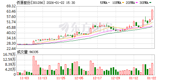 1月22日,侨源股份涨19.99%,成交额5.96亿元。两融数据显示,当日侨源股份获融资买入额5394.78万 元,融资偿还3571.99万元,融资净买入1822.79万元。截至1月22日,侨源股份融资融券余额合计1.98亿 元。 融资方面,侨源股份当日融资买入5394.78万元。当前融资余额1.97亿元,占流通市值的0.76%,融资余 额超过近一年90%分位水平,处于高位。 融券方面,侨源股份1月22日融券偿还0.00股,融券卖出300.00股,按当日收盘价计算,卖出金额1.95万 元;融券余量4900.00股,融券余额31.91万元,超过近一年90%分位水平,处于高位。 分红方面,侨源股份A股上市后累计派现9163.17万元。 机构持仓方面,截止2025年9月30日,侨源股份十大流通股东中,香港中央结算有限公司位居第七大流 通股东,持股89.12万股,相比上期增加21.19万股。 责任编辑:小浪快报 资料显示,四川侨源气体股份有限公司位于四川省成都市都江堰市灌温路1399号,成立日期2002年9月 10日,上市日期2022年6月14日,公司主营业务涉及高纯度气体研发、生产、销售和服务。主营业务收 入构成为 ...