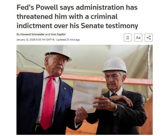 中新网1月12日电 据路透社报道,当地时间1月11日,美国联邦储备委员会主席鲍威尔表示,美国司法 部已向美联储发出传票,并威胁要就鲍威尔关于美联储大楼翻修的证词提起刑事指控。 据报道,鲍威尔11日表示,司法部1月9日向美联储发出了大陪审团传票,"威胁要就我2025年6月在参议 院银行委员会听证会上的证词提起刑事诉讼。" 鲍威尔提到此举为"借口",并表示美政府旨在就降息问题对他施加更多压力。 鲍威尔说:"这关系到美联储是否还能依据证据和经济状况来制定利率——或者说,货币政策是否会受 政治压力或胁迫所左右。" 鲍威尔还称,他将继续恪守参议院确认的职责,以正直之心履行使命。 此前美媒报道,美国联邦检察官已对鲍威尔展开刑事调查,调查涉及美联储办公大楼的翻修工程等。 图片来源:路透社报道截图 ...