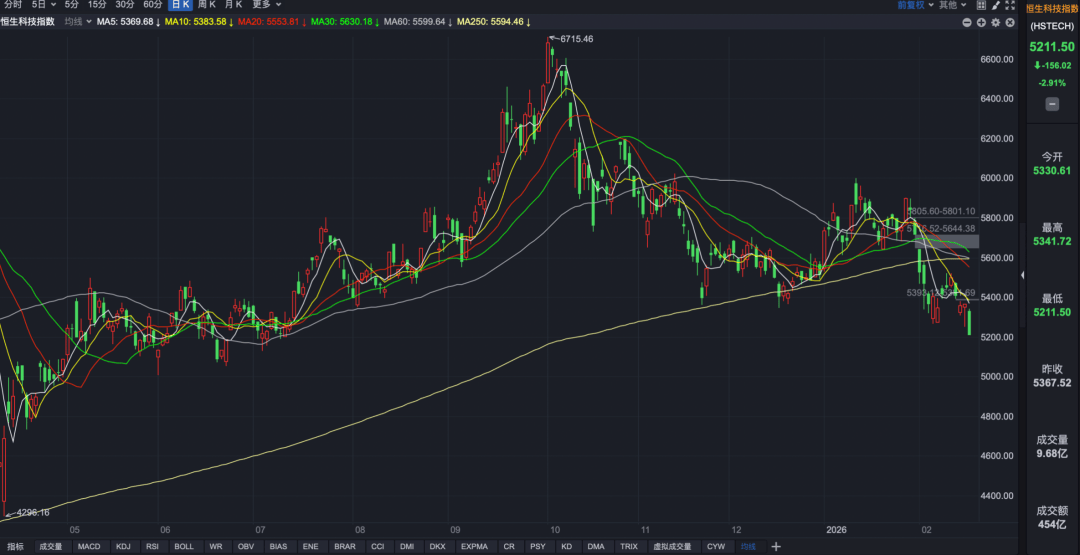 21世纪经济报道记者黄子潇 A股尚处春节休市期,港股已抢先开市。 大年初四(2月20日),港股迎来马年首个交易日。截至收盘,恒生指数跌1.10%,恒生科技指数跌2.91%。 尽管大盘的"开门红"未能如愿,但"春晚效应"正在显现,多只机器人概念股逆势走高。 同日,香港交易所、香港黄金交易所均举行新春开市仪式,港交所主席唐家成表示,今年以来已有24只新股上市,募资金额超过870亿港元,目前有488家企 业正在排队等候上市。"希望港股市场气氛能一直延续整个马年。"他表示。 此外,香港金市收获红盘。 港交所举行马年新春开市仪式。来源:港交所官网 恒指走弱收跌,机器人板块逆势上涨 2月20日,恒生指数低开后维持震荡,截至收盘全日下跌1.1%;恒生科技指数受软件板块拖累表现较弱,收跌2.91%。 从成交量来看,恒生指数、恒生科技指数等交易量均较节前(2月13日)降幅近40%,原因或为港股通的缺席。Wind数据显示,2025年港股通成交额占港股 市场总成交比例约55.3%。春节休市时间表显示,2月14日至2月23日,A股、沪/深港通(北向)、港股通(南向)均处于休市期,而港股在除夕(2月16 日)开市半日,在初四(2月20 ...