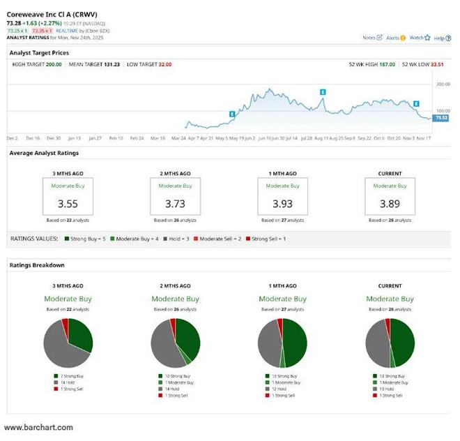 全球最大对冲基金桥水上季度完成了一笔出人意料的投资——斥资3700万美元购入270556股 CoreWeave(CRWV.US)股份。这一投资时点尤为引人关注,因为该基金创始人达利欧近期刚警告称,人 工智能(AI)板块已处于泡沫交易区间。 值得玩味的是,达利欧并未建议投资者恐慌性抛售。他提出了更精细的见解:虽然当前股价确实远超企 业内在价值,但泡沫不会凭空破裂,往往需要政策突变或财富税等催化剂才会被戳破。他真正担忧的是 坚守阵地的投资者将面临的后续挑战。 历史经验表明,当市场狂热至此,未来十年的投资回报往往不尽如人意。达利欧特别强调将投资组合分 散至黄金等资产类别的重要性——金价最近一度突破每盎司4300美元,创下历史新高。 此次对CoreWeave的投资,显示桥水在保持警惕的同时仍积极捕捉结构性机遇。CoreWeave专注于建设 AI专用数据中心,且与英伟达(NVDA.US)保持紧密合作关系,恰好精准契合了AI系统研发与运营所需 的海量算力需求爆发趋势。桥水似乎意在把握这波浪潮,同时将创始人的长期警示作为投资决策的约束 条件。 CoreWeave的看涨逻辑 CoreWeave第三季度营收表现超预期,但全年业 ...