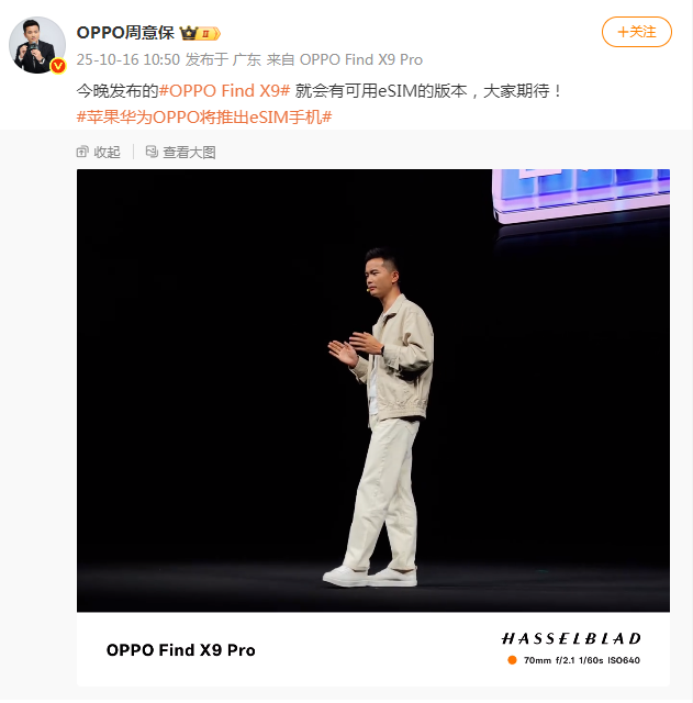 今晚发布,OPPO Find X9系列手机提供eSIM版本,预约超170万人