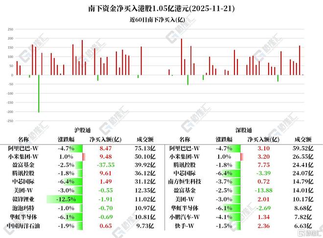 资金动向 | 北水逆势买入港股1.05亿港元,加仓腾讯、小米