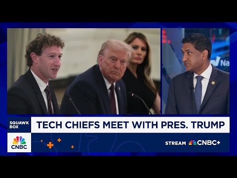 President Trump hosting tech leaders at the White House last night. CEOs included Mark Zuckerberg, Sam Alman, Tim Cook, and Satia Nadella all around the table with the president praising him for his leadership and outlining plans for multi-billion dollar investments in the US. Joining us right now is Congressman Roana of California's districts in the heart of Silicon Valley.You watch this. This was very much like a cabinet meeting where everybody went around in a circle and told the president how great he w ...