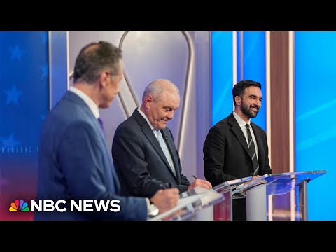 And turning now to New York and the three candidates taking the stage at an NBC studio to convince New Yorkers that they should be their next mayor. It's the first of two debates scheduled before voters are set to hit the polls in just a few weeks. The Democratic nominee Zoron Mandani currently holds a double-digit lead in the race against former New York Governor Andrew Cuomo and Republican Curtis Slua.Uh let's bring in Sam Brock who has been following the debate from the streets of Manhattan all the way i ...