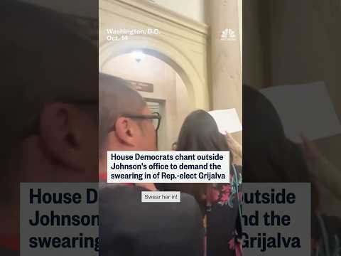 House Democrats chant outside Johnson's office to demand the swearing in of Rep.-elect Grijalva