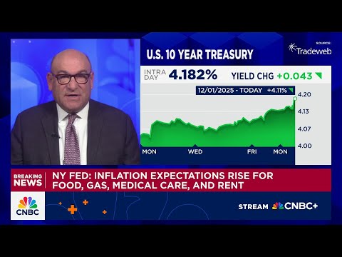 Good morning, Sarah. Yeah, some good breaking news from the New York Fed with inflation expectations unchanged and labor market indicators improving. Let's go through them.The one-year, the three-year, and the 5-year uh inflation expectations from the New York Fed survey all unchanged. 3 2 3 and three. Now, these are all a bit elevated, but it's good news that they're not going up.Inflation expectations rise for food, gas, medical care, a big increase there, and rent as well. Now, there's fodder for both ha ...