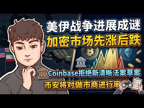 美伊战争进展成谜,加密市场先涨后跌,coinbase拒绝新清晰法案的草案,币安将对做市商进行审查【Vic TALK第1612期】