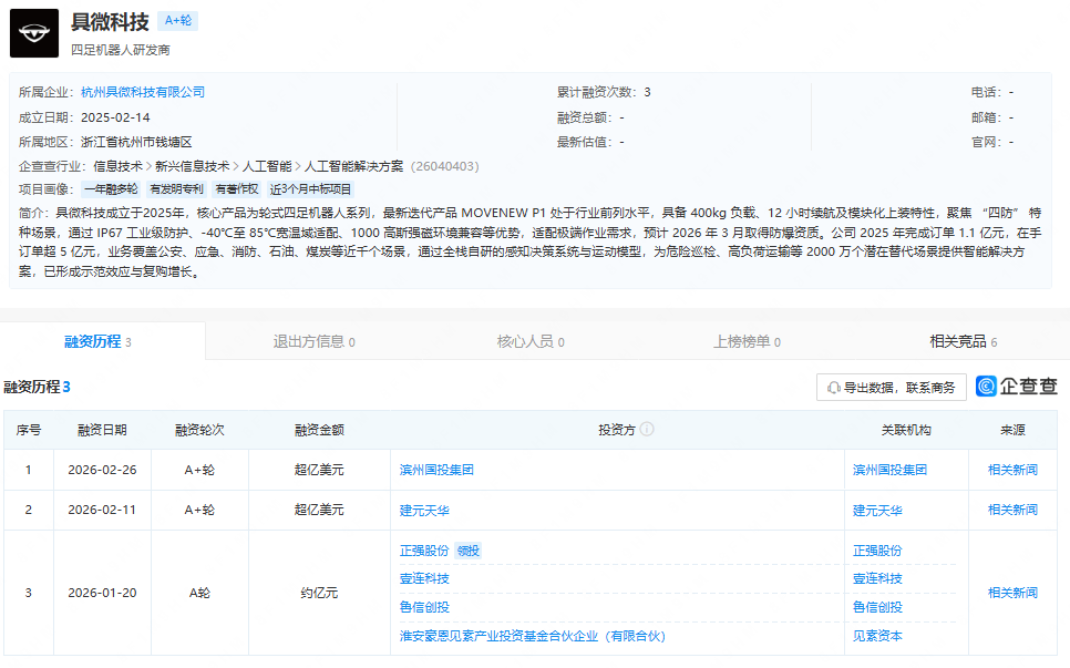 序号股东名称持股比例1湖南坤一文化旅游发展有限公司70%2湖南万博元建筑装饰有限公司30% 天眼查显示,近日,湘遇无界(湖南)数字科技有限公司成立,法定代表人为陈攀登,注册资本200万 人民币,湖南坤一文化旅游发展有限公司、湖南万博元建筑装饰有限公司持股。 来源:市场资讯 企业名称湘遇无界(湖南)数字科技有限公司法定代表人陈攀登注册资本200万人民币国标行业科学研 究和技术服务业>科技推广和应用服务业>技术推广服务地址湖南省长沙市天心区大托城外城家居建材 市场一期14号栋313号企业类型有限责任公司(自然人投资或控股)营业期限2026-2-26至无固定期限登记 机关长沙市天心区市场监督管理局 经营范围含数字文化创意内容应用服务;数字文化创意软件开发;人工智能应用软件开发;物联网技术服 务;区块链技术相关软件和服务;互联网销售(除销售需要许可的商品);供应链管理服务;货物进出口;技 术进出口;进出口代理;会议及展览服务(出国办展须经相关部门审批);非居住房地产租赁;企业管理咨 询;广告发布;广告制作;信息咨询服务(不含许可类信息咨询服务);业务培训(不含教育培训、职业技 能培训等需取得许可的培训)(除依法须经批 ...