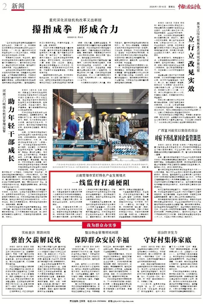 《中国纪检监察报》关注报道了楚雄市紧盯特色产业发展堵点 一线监督打通梗阻