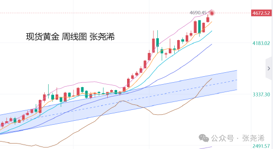 1月19日,2026年开年以来,黄金市场始终维持强势上行格局,上周行情在多空博弈中进一步夯实上涨 基础,长上影大阳线的收尾形态,既暴露了短期阻力压力,更彰显了多头的绝对主导地位。对于本周市 场走势,技术面与资金面形成共振,看多逻辑清晰,短线操作机会明确。回顾上周市场表现,黄金开盘 即展现强势姿态,以4520.9点位高开后,短暂回补缺口至4510.6点位,这一回踩动作成为多头蓄力的关 键节点。缺口回补后,买盘力量集中释放,推动金价开启强势拉升模式,盘中一路突破多重阻力,周内 最高触及4643.8点位,创下阶段性新高。不过,在高位区域空头开始发力,尾盘行情出现回落,最终收 线于4595.5点位,形成一根实体饱满、上影线较长的大阳线。 这一K线形态背后,是多空力量的激烈博弈与主力资金的操盘逻辑。从形态特征来看,大阳线实体意味 着本周多头整体占据优势,涨幅显著且资金进场意愿强烈,而长上影线则反映出4640上方存在明显阻 力,多头在冲高过程中遭遇空头反击,部分短线资金趁机获利了结。但结合量能与回调幅度分析,此次 高位回落更偏向主力试盘与洗盘动作——冲高时放量、回落时缩量,且收盘价仍站稳4590关键位置,尾 盘未出现恐慌 ...