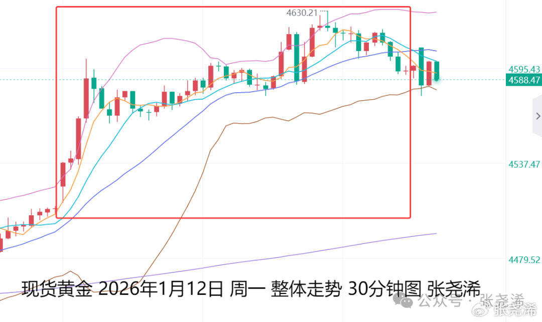 来源:张尧浠 具体走势上,金价自亚市高开至4516.02美元/盎司,先行录得日内低点4512.88美元,之后反弹攀升,虽至8点半时段触及4600美元关口,有所遇阻回撤近 40美金,但整体依然保持震荡上行,并延续到美盘时段,突破关口,进一步录得日内高点4629.86美元,最终遇阻回撤,收于4597.28美元,相对于上周五 收盘价4509.95美元,日振幅119.91美元,收涨87.33美元,涨幅1.94% 展望今日周二(1月13日):国际黄金开盘延续隔夜尾盘回撤动力,早盘有所走弱,加上美元指数延续昨日的触底回升,早盘有所偏强,也限制了金价多 头。但金价也仍具进一步上涨动力。 同时,日内还将受到美国12月未季调核心CPI年率的预期走高,而多头反弹受限,不过CPI的升高也会带动金价的商品属性,使其反弹,故此,如晚间公 布的CPI整体下降,将会提升降息前景,金价直接再度走强,如果高于前值或者是预期,金价则是先跌后涨,整体上,无论什么结果,操作都是逢低做多 为主。 张尧浠:金价再刷历史高点、后市前景仍具上涨空间 上交易日周一(1月12日):国际黄金受到周末地缘局势加剧,以及特朗普政府对美联储主席鲍威尔展开刑事调查的不确 ...