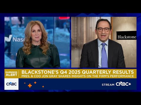 Private equity giant Blackstone is out with its fourth quarter results. Earnings and revenue beating expectations driven by heightened dealmaking activity and growth in Blackstone's data center business. The company took in over 71 billion dollars in new capital during the quarter with total assets under management reaching $1.27% trillion.And joining us right now to talk about the company's performance, the investing environment, AI, and much more is John Gray. He's the president and chief operating office ...