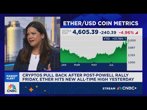 All right. So, I'm looking. I mean, everything in the crypto complex is pulling back.That's interesting. I mean, why after Jackson Hole is everything pulling back. Because I think a lot of people thought it'd be risk on.Everybody's ready to kind of take those riskier bets, you know, and it may still be. So, I think what we're seeing over the weekend is a lot of liquidations that were triggered. Um, the price of ETH just ran up so high so quickly.Um, just in the last 24 hours, I think we've seen more than $2 ...