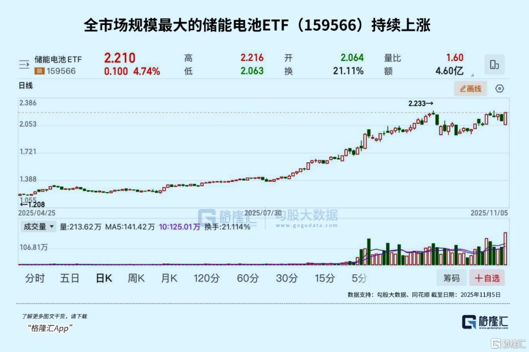 新能源板块强势领涨,储能电池ETF(159566)全天获近亿份净申购