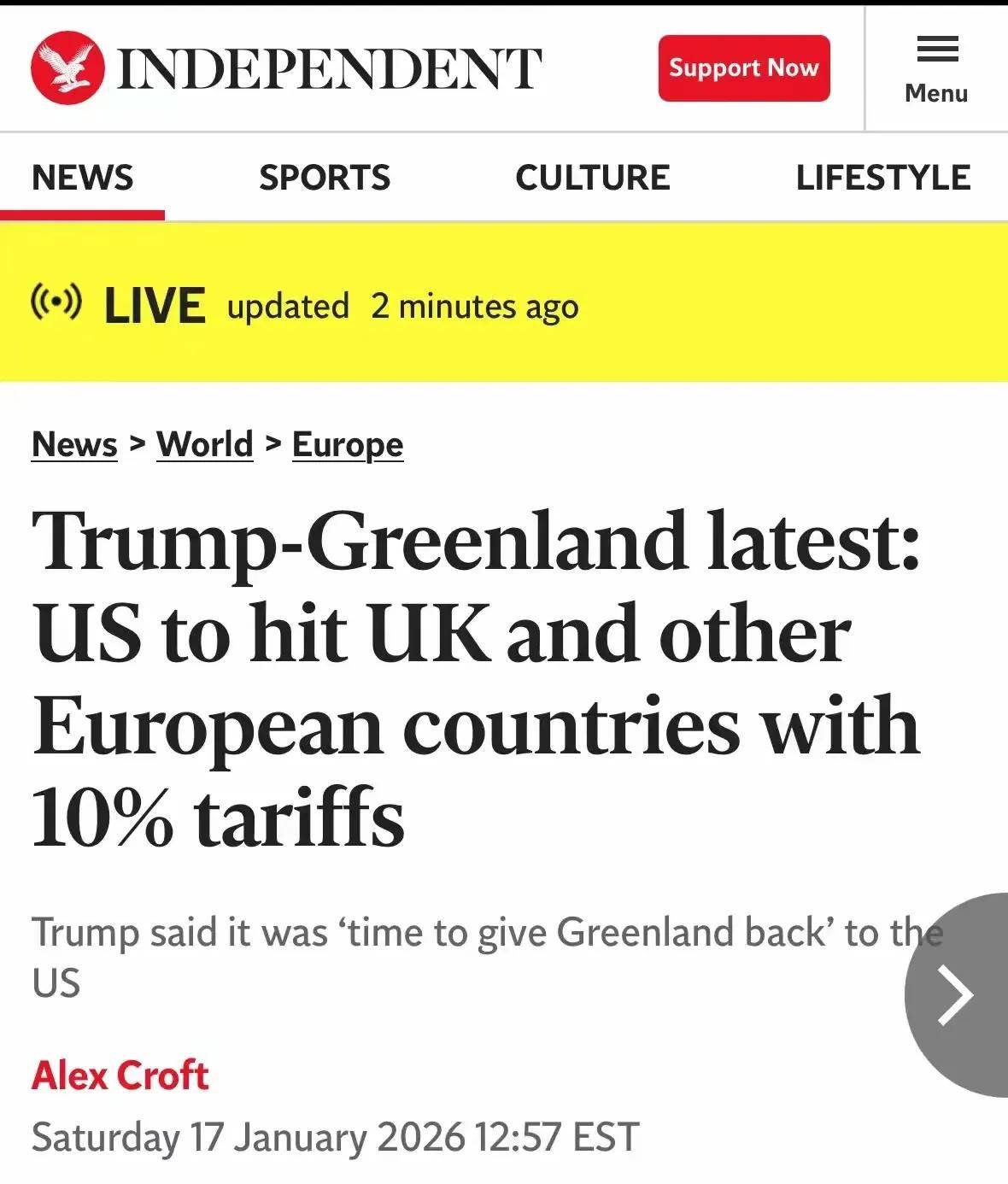 当地时间1月17日,美国总统特朗普在"真实社交"平台发布一张个人黑白照片,并自诩为"关税之王"。 同日,特朗普在社交媒体上宣布,将从2月1日起对来自丹麦、挪威、瑞典、法国、德国、英国、荷兰和 芬兰的输美商品加征10%关税,并宣称加征关税的税率将从6月1日起提高至25%,直到相关方就美 国"全面、彻底购买格陵兰岛"达成协议。 据《今日美国报》报道,当地时间1月16日,特朗普在白宫一场与格陵兰岛议题无关的农村医疗健康活 动上,提到自己曾通过以医药关税相要挟,向欧洲国家施压。 "对于格陵兰岛问题,我或许也会如法炮制," 特朗普称,"要是有国家不配合我们拿下格陵兰岛,我可 能会对它们加征关税,因为格陵兰岛对美国的国家安全至关重要。所以我确实有可能这么做。" 报道提到,美国最高法院随时可能对特朗普单方面在全球范围内征收关税的合法性做出裁决,这些关税 已通过对外国进口商品征税筹集了数千亿美元。 对此,特朗普16日表示:"我是'关税之王',本'关税之王'干得非常出色。我希望我们能赢得最高法院的 官司,因为如果我们输了,那将是我们国家的耻辱。" 多名欧洲议会议员1月17日说,鉴于美方对格陵兰岛的威胁,去年7月欧美达成的贸易协 ...