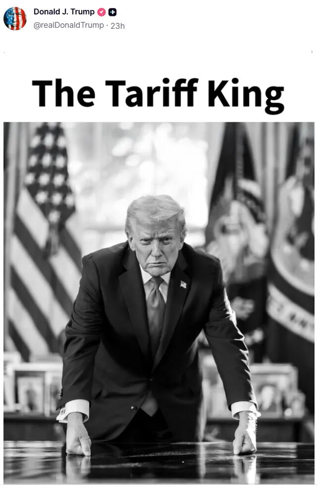 特朗普发布个人黑白照,称自己是“关税王”