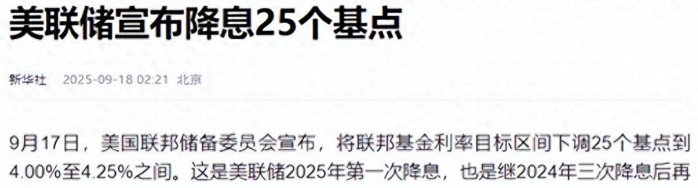 美联储降息25个点!贷款便宜了,积蓄却缩水,普通人仍被割韭菜?