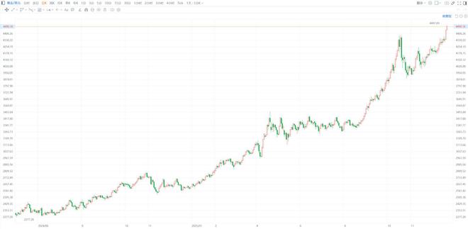 历史新高!现货黄金逼近4500美元