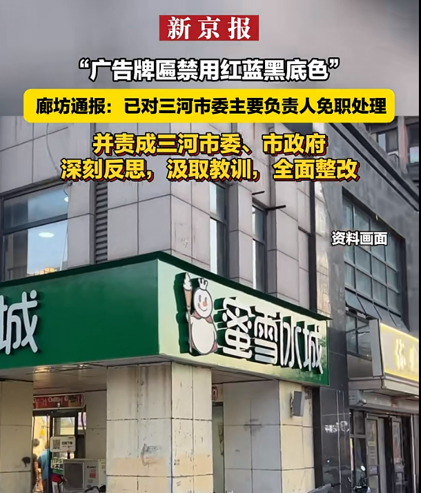 虽说这个过程中,诸如当地城管等行政部门曾就此事对媒体有过零星的回应,然而,"不心疼钱可改回 原色"等轻佻回应,非但无益于平息舆情,反而激起了舆论的新一轮质疑。 专题:河北三河招牌禁用红蓝色,人民日报发声 15日,廊坊通报"广告牌匾禁用红蓝黑底色"事件。图/新京报视频号截图 "媒体反映的主要问题基本属实""已对三河市委主要负责人免职处理""责成三河市委、市政府深刻反 思,汲取教训,全面整改"…… 4月15日,河北廊坊通报了"广告牌匾禁用红蓝黑底色"一事的初步调查结果。面对这样的处理结果,很 多人并没有感到意外,或者说,在人们的认知中,这本就该是处理此类事件的应有之义。 事实上,在舆论发酵多日以来,除了"广告牌匾禁用红蓝黑底色"本身的不合理引发广泛质疑外,涉事地 方的沉默以对,同样让人感到不解。 ▲资料图:4月 人们为何执着于对此事的追问?除了出于对地方相关部门行为的不解,还有对权力之手过度介入市场经 营活动和人们日常生活的反感。而从更深层面去看,舆论表现出来的这种姿态,其实也透露出其对地方 政府"科学决策、依法行政"的期待。 从公开报道看,这些年来,不少地方都要求让政府做好"店小二"。但在具体的实践中,还是有一 ...