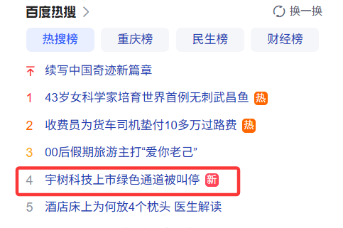 4日,有媒体报道称,宇树科技A股上市的"绿色通道"被叫停,但上市并未叫停。一时间,"宇树科技上 市绿色通道被叫停"的话题登上热搜。晚间,宇树科技方面回应称,该报道涉及其上市工作相关动态情 况的内容与事实情况不符,宇树科技未涉及申请"绿色通道"相关事宜。 相关话题截图 1月4日,有媒体报道称,宇树科技A股上市的"绿色通道"被叫停,但上市并未叫停。 报道中表示,所谓上市"绿色通道"是一种旨在优化审核流程、缩短上市时间的机制,通过优先处理、简 化程序等方式提升效率。 晚间,针对宇树科技上市相关报道,宇树科技方面回应媒体称:该报道涉及我司上市工作相关动态情况 的内容与事实情况不符,我司未涉及申请"绿色通道"相关事宜。相关报道误导公众认知,已严重侵害我 司合法权益。我司已向主管部门反映,同时督促相关方撤回不实报道。我司在此严正声明,后续将保留 通过法律手段追责的权利。目前,我司上市工作正常推进,相关进展将依法依规进行披露,感谢社会各 界对公司的关心与支持。 资料来源:智通财经、封面新闻 ...