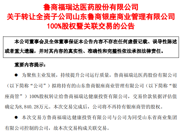 福瑞达再次“瘦身”,拟8840万元转让银座商管