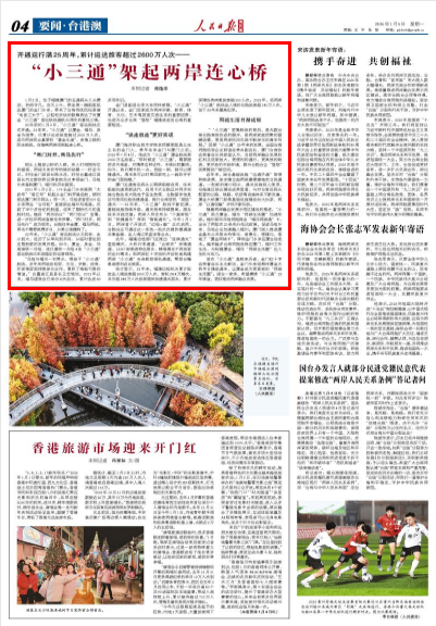 2001年1月2日,马祖乡亲乘坐"台马轮"首航福州马尾,金门乡亲搭乘"太武号""浯江号"首航厦门和平码 头,"小三通"海上客运直航正式开启。随后"两马协议""两门协议"签署,进一步拉开两岸直接往来序 幕,"两门对开,两马先行"成为现实。 "'小三通'得来不易,是两岸同胞共同奋斗的成果。"作为首次"小三通"直航亲历者,马祖前民意代表曹 尔忠把25年前首航戴的那顶帽子带到活动现场。"'小三通'给马祖和金门乡亲带来了非常多福祉。" 马祖县县长王忠铭说,得益于"小三通",多年来马祖和福州在文化、经贸、观光、民间往来等层面持续 深化合作。2015年起,福马磋商会已举办八次会谈,累计达成40多项共识。"这些成果逐步转化为两岸 实质互惠的交流合作,也在互信基础上持续堆叠善意,让交流不只是停留在理念上,而且是真正走进人 民的生活。" (来源:新华日报) 首次"小三通"直航亲历者、金门红十字会荣誉会长王水彰昨日在"小三通"客运航线通航二十五周年主题 座谈交流活动现场接受采访。 新华社记者 许雪毅 摄 据新华社电 自2001年1月2日首航以来,"小三通"客运航线通航25年,已累计运送旅客超过2600万人 次,成为两岸民众重要的" ...