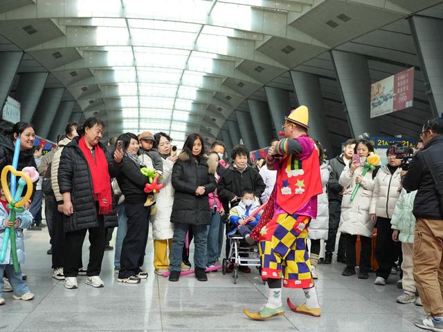 上午10时,活动在诙谐幽默的魔术表演《滑稽》中拉开帷幕,魔术师以灵动的手法、趣味十足的互动设 计,引得在场旅客尤其是小朋友阵阵欢呼。随后,经典河北梆子选段《武松打店》惊艳登场,高亢嘹亮 的唱腔,将传统戏曲的独特魅力展现出来。节奏明快的曲艺快板《绕口令》紧随其后,以口齿伶俐的演 绎、铿锵有力的节奏,将传统曲艺的功底展现得入木三分。 婉转悠扬的京韵大鼓《碧天云外》缓缓响起,醇厚的唱腔、细腻的演绎,带着浓浓的京味文化底蕴。经 典评剧《秦香莲》选段一登场,便引发了强烈共鸣,耳熟能详的旋律、饱含情感的演唱,让不少喜爱传 统戏曲的旅客跟着轻声哼唱。 2月22日正值春运返程客流高峰。北京南站二楼候车大厅内,精彩纷呈的主题文化活动让候车旅客不再 无聊,为奔波的返程旅途增添一抹温暖亮色。 耳熟能详的歌曲《好运来》《欢乐中国年》接连唱响,喜庆欢快的旋律瞬间将现场氛围推向顶点,在场 旅客纷纷跟着节奏挥手、打拍,不少人更是自发加入合唱,候车大厅里汇成一片欢乐的"海洋"。 今年春运,北京南站开展"旅途贺新春、温暖回家路"春运送温暖文明实践活动,包含舞蹈和戏曲快闪活 动、写福送福活动和书画展览等,旨在以群众喜闻乐见的文艺形式,弘扬中华优 ...