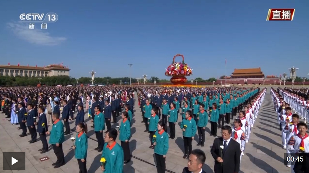 独家视频丨向人民英雄敬献花篮仪式正式开始 全场高唱国歌