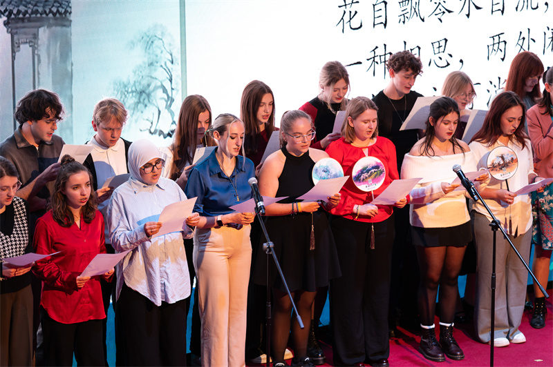 本次中秋诗会是布鲁塞尔中国文化中心开馆10周年系列活动之一。活动以诗为媒,以月为桥,让比利时青年 学生走近中秋、了解中国,感受中华文化的独特魅力与当代价值。 图为活动现场。布鲁塞尔中国文化中心供图 诗会由布鲁塞尔孔子学院学生苏利(François Sullivan)与蒙斯大学博士生白依依(Eloïse Bay)主持。两位比 利时青年以中英双语介绍了中秋节的文化内涵与传统习俗。伴随柔美的音乐,来自多所学校的青年学生朗诵了 《月下独酌》《八月十五夜湓亭望月》《秋霄月下有怀》《登鹳雀楼》《静夜思》等脍炙人口的中国诗篇,并用 法语和英语分别演绎了法国诗人魏尔伦的《月光》和美国诗人朗费罗的《丰收之月》。中外诗句交相辉映,展现 了诗歌跨越国界、联通心灵的独特魅力。 随后,《月满西楼》《茉莉花》、长笛演奏《月亮代表我的心》、舞蹈《葡萄架下》、童谣等节目轮番上 演,现场掌声与笑声不断。趣味问答环节更是将气氛推向高潮,大家在轻松愉快的氛围中感受节日的温馨与欢 乐。 压轴环节中,布鲁塞尔中国文化中心学员集体朗诵北宋词人苏轼名篇《水调歌头·明月几时有》。旅比画家张 文海现场讲解词中名句"但愿人长久,千里共婵娟"的意境之美,并带领嘉 ...