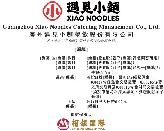 智通财经APP获悉,据港交所11月17日披露,广州遇见小面餐饮股份有限公司(以下简称:遇见小面)通 过港交所主板上市聆讯,招银国际为独家保荐人。根据弗若斯特沙利文的资料,就2024年总商品交易额 而言,该公司为中国第四大中式面馆经营者,市场份额为0.5%。 该公司的根基建立在重庆小面之上。重庆小面是一系列麻辣风味的主食,起源于山城重庆,在全国各地 享有盛名。作为以重庆小面系列为主打的中式餐饮连锁品牌,该公司的产品已扩展到各种辣与不辣的菜 品,涵盖面条、米饭、小吃和饮料。 该公司的餐厅采用直营或特许经营模式经营。于往绩记录期间,该公司的餐厅数量持续攀升,财务业绩 亦取得快速增长。自往绩记录期间期初至2025年10月8日,该公司的餐厅数量已由133家增长239.1%至 451家。 | 編纂]的[編纂]數目 | :: | [編纂]股H股(視乎[編纂]行使與否而定) | | --- | --- | --- | | [编纂]數目 | : | [編纂]股H股(可予[編纂]) | | [編纂]數目 | : | [編纂]股H股(可予[編纂]及視乎[編纂]行 | | 使與否而定) | | | | 最高[編纂] : | | 每股 ...