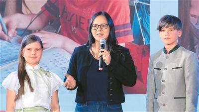 王箐老师(后排右二)和学生们合影。学生手中拿的是王老师为每个人制做的中文名徽章,旨在增强他 们的集体荣誉感。 本版照片均由受访者提供 德国汉堡有个特别的跨国家庭:自幼结缘中文的德国母亲,英籍父亲,加上一对每周六赴华文学校孔子 课堂学中文的儿女。兄妹俩和母亲讲德语和中文,和父亲讲英语。多元语言环境里,中文既是母子之间 的乐趣,也是家庭文化的一部分。 今年夏天,兄妹二人登上"汉语桥"中文比赛的舞台,真诚讲述中文学习故事,分别斩获德国赛区中小学 组冠军,并在全球总决赛中获奖。这份成果,既得益于家庭氛围浇灌的兴趣萌芽,也离不开孔子课堂老 师的用心培育。 家庭浸润:语言"活"起来 "小时候我看到中国动画片、电视剧里的漂亮'仙女',以为自己长大后也会有黑头发、黑眼睛,结果我 头发一直是咖啡色,眼睛还是蓝绿色的。"刚过完11岁生日的德国小学生黄晓蕾,在采访中用一口流利 的中文讲述儿时趣事。 四五岁起,她和哥哥黄永杰便开始去英国的中文学校学习中文,后来进入德国汉堡的汉华中文学校孔子 课堂,同时跟着中国老师学习历史、乐器、歌舞等课程。 这份中文情缘,得从他们的妈妈——黄雪薇小时候的经历讲起。 黄雪薇(中)和儿女在中国录制节目。 ...