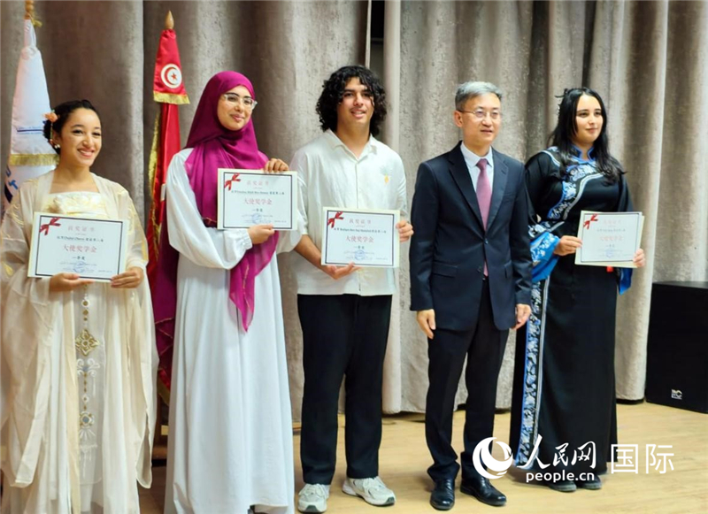 Core Points - The Chinese Embassy in Tunisia awarded the second "Ambassador Scholarship" to 39 high school students and recognized 4 teachers for their contributions [1][2] - The event emphasized the importance of cultural exchange and encouraged Tunisian students to learn Chinese to better understand Chinese culture and modernization [2] Group 1 - The scholarship ceremony took place at the Confucius Institute of Carthage University, attended by nearly 100 teachers and students from 18 high schools in 5 provinces [1] - Ambassador Wan Li highlighted the spirit of the 20th National Congress of the Communist Party of China, promoting international cultural cooperation [2] - Award recipients expressed their desire to strengthen Sino-Tunisian friendship and the importance of learning Chinese for future opportunities [3][4] Group 2 - Award winner Shahid expressed a wish to become Tunisia's ambassador to China and promote Chinese as a second official language [3] - Ibrahim, another awardee, shared positive experiences from a summer camp in China, highlighting the country's rich history and friendly people [3] - Debaji, a passionate Chinese learner, inspired classmates to join her in studying the language, while Salma expressed interest in Chinese fashion and films [3][4]