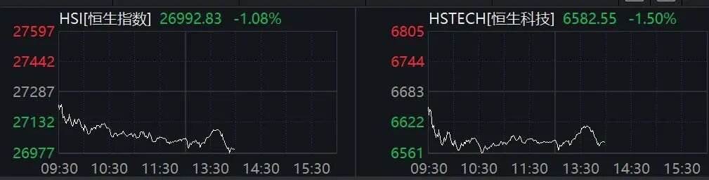 午后,港股维持疲弱走势。个股方面,小米集团跌近2%。 港股跌逾1% 恒生指数盘中跌超1%,恒生科技指数一度跌超1.7%。 交银国际研报认为,9月港股延续震荡上行态势,在中美谈判重启和海外降息预期双重利好助推下,叠加科技板块轮动上涨,对大盘形成重要提振。外部 环境延续向好,中美贸易谈判重启,双方就关税削减、出口管制等关键议题展开磋商,市场对双边关系进展预期有所升温。与此同时,中国内地宏观政策 保持连续性和稳定性,"稳增长"政策工具箱储备充足,亦为港股提供了基本面预期支撑。 该机构认为,国庆及中秋长假影响,港股市场预计将短暂进入"淡季"模式,叠加美国政府短期融资法案不确定性,海外扰动影响或放大。同时,市场对美 联储降息时点和幅度仍存分歧,短期内可能仍以"有条件降息"为主调,预期反复或引起市场震荡。港股部分优质板块估值已接近历史高位,短期获利了结 压力犹存,可重点关注美联储降息节奏、中美关系进展及中国内地稳增长政策情况。 小米集团早盘下跌,午后跌近2%。 近日,"小米汽车自己开走"的话题冲上微博热搜。 个股方面,大众公用涨超23%,上海电气涨近16%。 有网络报道称,10月2日,山东威海一位车主发视频反映,自己的小 ...