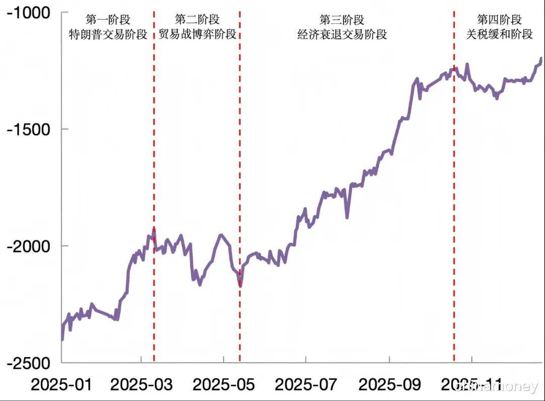 数据来源:Wind资讯 2025年,人民币外汇掉期市场呈现整体震荡上行态势。从国内情况来看,央行运用了降息、降准等逆周期调节措施,维持适度宽松的货币政策。就国际形势 而言,在美国关税政策引发的通胀风险预期以及疲软的就业数据的双重作用下,美联储于下半年谨慎开启降息后内部分歧加大,降息前景依然复杂。全年中 美十年期国债收益率差由年初的3.1%下行至年末的2.2%左右,人民币兑美元1年期掉期点也由-2400pips攀升至-1200pips附近。在整体上行的过程中,1年期 掉期点呈现不同的阶段性特征。具体来讲,主要可划分为四个阶段。 图2 中美10年期国债收益率走势 内容提要 2025年人民币外汇衍生品市场呈现出不同的阶段性特征。外汇掉期整体震荡上行,外汇期权波动率阶段性上升、但整体趋于稳定。展望2026年,预计人民币 兑美元掉期市场或先延续震荡上行态势,后进入区间波动;人民币外汇期权波动率或将保持低位。 2025年,受国内外经济基本面变化、中美贸易摩擦演进及美联储降息预期博弈等政治经济事件影响,人民币外汇衍生品市场呈现出不同的阶段性特征。具体 而言,外汇掉期整体震荡上行,外汇期权波动率阶段性上升、但整体趋于稳定。 ...