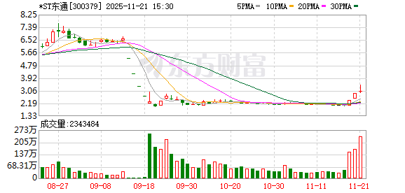 *ST东通今日上涨4.15%,全天换手率44.50%,成交额7.46亿元,振幅19.10%。龙虎榜数据显示,营业 部席位合计净卖出391.23万元。 深交所公开信息显示,当日该股因日换手率达44.50%上榜,营业部席位合计净卖出391.23万元。 证券时报·数据宝统计显示,上榜的前五大买卖营业部合计成交1.04亿元,其中,买入成交额为5018.66 万元,卖出成交额为5409.89万元,合计净卖出391.23万元。 资金流向方面,今日该股主力资金净流出8191.42万元,其中,特大单净流出4355.12万元,大单资金净 流出3836.30万元。近5日主力资金净流出1.20亿元。(数据宝) *ST东通11月21日交易公开信息 | 买/ | 会员营业部名称 | 买入金额(万 | 卖出金额(万 | | --- | --- | --- | --- | | 卖 | | 元) | 元) | | 买一 | 东方财富证券股份有限公司拉萨团结路第一证券营业部 | 1065.78 | 859.04 | | 买二 | 东方财富证券股份有限公司拉萨东环路第一证券营业部 | 1048.87 | 1026.29 | | 买三 | 东方财 ...