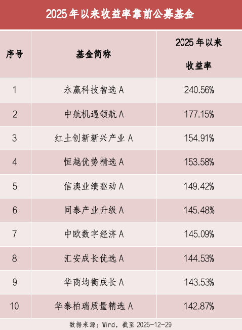 2025年资本市场收官在即,A股结构性行情演绎极致,权益基金迎来业绩"大年"。据Wind数据显示,截 至12月29日,全市场收益率超100%的"翻倍基"已达84只,其中主动权益基金70只,最高收益率突破 200%,沪深300指数同期涨幅约18%,公募主动管理能力再度彰显。 全市场70只主动权益"翻倍基"中,共有8家基金公司跑出3只及以上"翻倍基",中大型基金公司居多。 | 2025年主动权益"翻倍基"数量较多的基金公司 | | | | --- | --- | --- | | 序号 | 基金公司 | "翻倍基"教量 | | 1 | 易方达基金管理有限公司 | 10 | | 2 | 富国基金管理有限公司 | 8 | | 3 | 永赢基金管理有限公司 | ব | | 4 | 安信基金管理有限责任公司 | 4 | | 5 | 融通基金管理有限公司 | 3 | | 6 | 华商基金管理有限公司 | 3 | | 7 | 红土创新基金管理有限公司 | 3 | | | 数据来源:Wind,截至 2025-12-29 | | 数据来源:Wind,截至2025-12-29 业内人士分析指出,2025年主动权益基金业绩的显著回升, ...