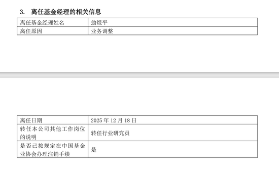 来源:重仓 牛市行情下,一只基金也管理不好,长城基金基金经理翁煜平日子有点难过。 近日,长城基金发布公告,长城久源灵活配置混合型证券投资基金(以下简称"长城久源混合基金")基 金经理翁煜平离任,转任公司行业研究员。 | 离任基金经理姓名 | 翁煜平 | | --- | --- | | 离任原因 | 业务调整 | | 离任日期 | 2025年12月18日 | | --- | --- | | 转任本公司其他工作岗位 | 转任行业研究员 | | 的说明 | | | 是否已按规定在中国基金 | 是 | | 业协会办理注销手续 | | 作为一位任职时间超过四年的基金经理,翁煜平很难说是行业新手。长城基金给了四年多的时间,翁煜 平还是没能证明自己。如此这般被打回做研究员,对个人而言,无疑是一次事业上的重大挫折。而放眼 整个公募基金行业,像翁煜平这样的基金经理也相当少见。 壹 长城基金十年"老人" "独管一基"四年多亏损过半 据天天基金网,翁煜平,中国,硕士研究生、硕士,曾就职于国际商业机器科技有限公司(2006年9 月-2015年6月),2015年7月加入长城基金管理有限公司,历任研究部研究员,曾任长城久源混合基金 基金 ...