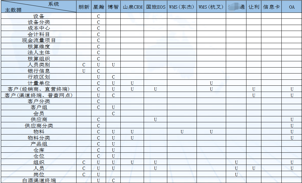 Y公司的痛点,源于多元发展带来的系统复杂度: 这些问题直接影响了企业的决策效率 —— 比如营销部门想做客户分层,却因客户编码重复无法准确统计;采购部门因供应商数据不一致,导致重复采购 成本增加。 针对痛点,Y公司联合亿信华辰,制定了 "数出同源、规范校验、统一赋码、数据共享、历史清洗" 的五步法策略,搭建并落地实施主数据管理平台,核 心是让数据有唯一来源、唯一标准、唯一编码。 在白酒行业,以酒为主、多元发展是不少企业的战略选择,但多业态布局往往伴随数据碎片化的隐忧 —— 当酿酒、饮料、文旅、玻璃等业务线各自运行 着独立的信息系统,当客户、物料、人员数据在EAS、WMS、销售等系统中各自为战,数据不一致、冗余、孤岛等问题,就像藏在企业机体里的隐形血 栓,悄悄拖慢数字化进程。 某老牌酒业集团(以下简称Y公司),下辖10余个法人公司,业务覆盖酿酒、文旅、五金、玻璃等领域,也曾被这些问题困扰。2024年,他们启动了主数 据管理项目,目标是打通数据任督二脉,让数据从混乱资源变成战略资产。如今项目落地一年,Y公司的实践不仅解决了自身痛点,更为白酒行业提供了 一份可复制的主数据管理样本。 | 系统 主数据 | 朗新 | 星 ...