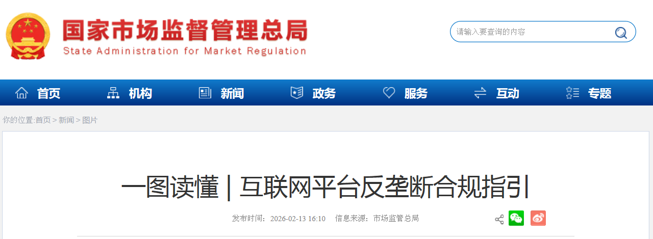 国家市场监管总局发布 《互联网平台反垄断合规指引》