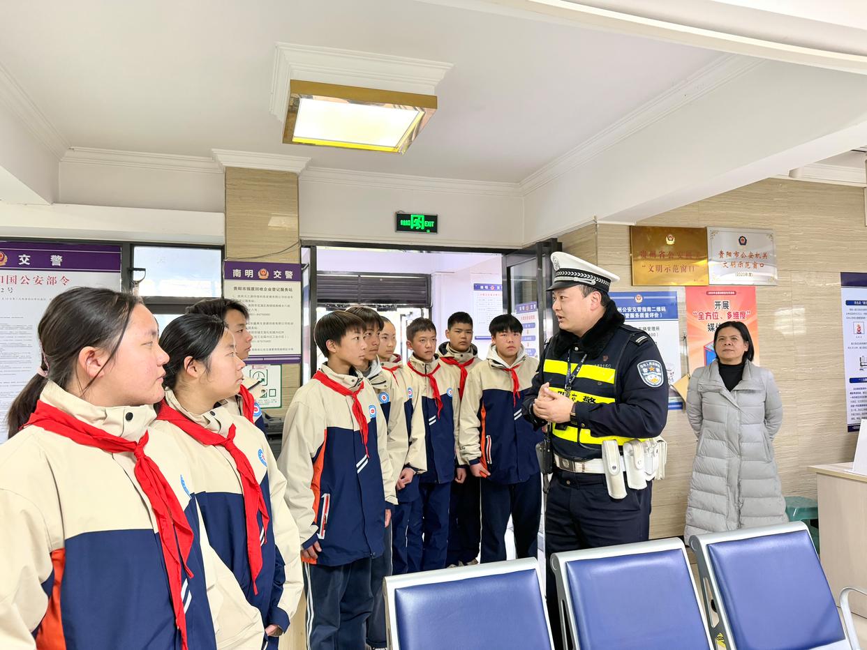 四中队中队长陈飞飞结合业务大厅摆放的交通事故案例,向学生讲解遵守交通法律法规的重要性。"超员、超载、酒后驾车危害大,我们日常出行要遵守道 路交通法律法规,也要监督好自己的家长,文明出行。"一名学生说道。 (来源:百姓关注) 为进一步加强辖区学生道路交通安全教育,提升学生交通安全意识和自我保护能力。1月8日,贵阳市南明交警开展警营开放日活动,邀请贵阳市第十五中学 师生代表走进警营,让同学们"零距离"感受和了解交通警察的日常工作,学习交通安全知识。 活动中,贵阳市第十五中学的学生们走进综合业务处理大厅、自助处理大厅,民警熊娇娇为大家介绍、讲解、示范"车驾管业务智能终端机"的使用方法。 接着,陈飞飞组织师生到二楼开展交通安全讲座。结合辖区实际情况,陈飞飞为同学们介绍了交通安全的要点,讲解了常见的交通标志、标线、信号,鼓励 同学们争当交通安全的监督员、宣传员,带动身边的人自觉遵守交通法律法规,安全文明出行。 最后,带队老师对南明交警一直以来开展助学岗、完善校园周边交通设施、入校宣传等工作,有效提升学校师生交通安全意识,护航师生上放学平安表示感 谢,并为民警送上一面印有"护学岗上情牵桃李,平安路里爱暖校园"的锦旗,祝南 ...