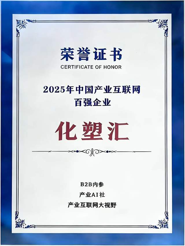 化塑汇荣获2025年产业互联网百强企业