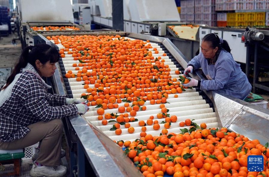 近年来,云南省华宁县因地制宜发展柑橘产业,建设柑橘产业园,推动产业绿色化、规模化、品牌化发展。产业园采取"公司 +集体经济组织(专业合作社)+农户"的发展模式,带动农户增收。 10月27日,在云南省华宁县华溪镇柑橘收购工厂,选果工人在分拣柑橘。 ...