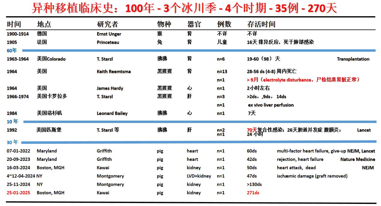 Core Insights - The field of xenotransplantation has made significant advancements in 2025, surpassing breakthroughs achieved in the past century, particularly highlighted by the case of a genetically edited pig kidney functioning in a human for 271 days [1][2] - The comparison between the recent pig kidney transplant and a historical chimpanzee kidney transplant reveals only a marginal improvement in survival time, raising questions about the progress in xenotransplantation compared to other medical advancements like artificial hearts [1][5] Summary by Sections Historical Context - The longest survival record for a kidney transplant from a chimpanzee was set in 1964, lasting 269 days, while the recent pig kidney transplant extended this record to 271 days [2][5] - The historical context shows that despite over 60 years of research, the improvement in survival time for xenotransplantation has been minimal when compared to advancements in other areas of organ transplantation [1][5] Technological Advancements - The recent case of Tim Andrews demonstrates the potential of genetically edited pig kidneys, which have been modified to enhance compatibility with human immune systems [1][9] - The use of modern immunosuppressive therapies has allowed for longer survival times in xenotransplantation, indicating progress in managing immune rejection [6][10] Challenges and Limitations - The field faces significant challenges, including the need for more effective immunosuppressive drugs specifically designed for xenotransplantation, as current medications are primarily developed for same-species transplants [15][17] - The approval process for clinical trials in xenotransplantation varies significantly between countries, with the U.S. having a more structured approach compared to China's relatively unregulated environment [17] Future Prospects - The potential for xenotransplantation to provide a sustainable source of organs is promising, especially given the increasing demand for organ transplants and the shortage of human donors [10][18] - The development of artificial organs, particularly artificial hearts, is advancing rapidly, which may create competition for xenotransplantation in the future [18][22] Ethical and Practical Considerations - Ethical concerns regarding the use of primate organs have shifted the focus to pigs, which are more practical for large-scale organ production and genetic modification [9][19] - The complexity of developing artificial kidneys and livers remains a significant barrier, with current technologies not yet capable of producing viable implantable organs [22][23]