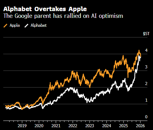 Alphabet市值超越苹果 仅次于英伟达