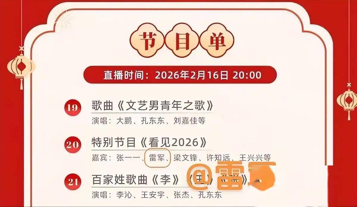 随着春节的临近,各大电视台也开始紧锣密鼓地筹备春节联欢晚会,而作为每年最受瞩目的春晚,央视春晚更是备受期待。除了精彩的表演节目外,春晚的 节目单也是备受关注的话题,每年都有不少网友猜测和讨论春晚的节目单,尤其是一些特别节目更是备受瞩目。 而就在近日,一档名为《看见2026》的特别节目引起了网友的热议,据悉,这档节目将由小米创始人雷军以及其他科技圈的大佬们参与,而参与者名单中还 包括了知名导演张一一和作家许知远,这样的阵容无疑给春晚增添了不少看点。 据悉,《看见2026》这档特别节目将会邀请多位科技圈的大佬参与,其中包括了小米创始人雷军、深度科技创始人梁文锋、以及美团创始人王兴,这几位科 技大佬可谓是当下科技圈的风云人物,他们所创办的公司也都是行业内的佼佼者。 而这样的阵容能够齐聚春晚,无疑给观众带来了很大的期待,大家都非常好奇,这几位科技大佬会在春晚舞台上带来怎样的精彩表现,他们又会给观众带来 怎样的科技盛宴。 虽然《看见2026》这档特别节目已经引起了不少网友的热议,但是目前节目单中的参与者名单并没有得到官方的确认,因此节目的真实性还有待验证。 每年春晚的节目单都是备受瞩目的话题,不少网友都会猜测和讨论春晚 ...