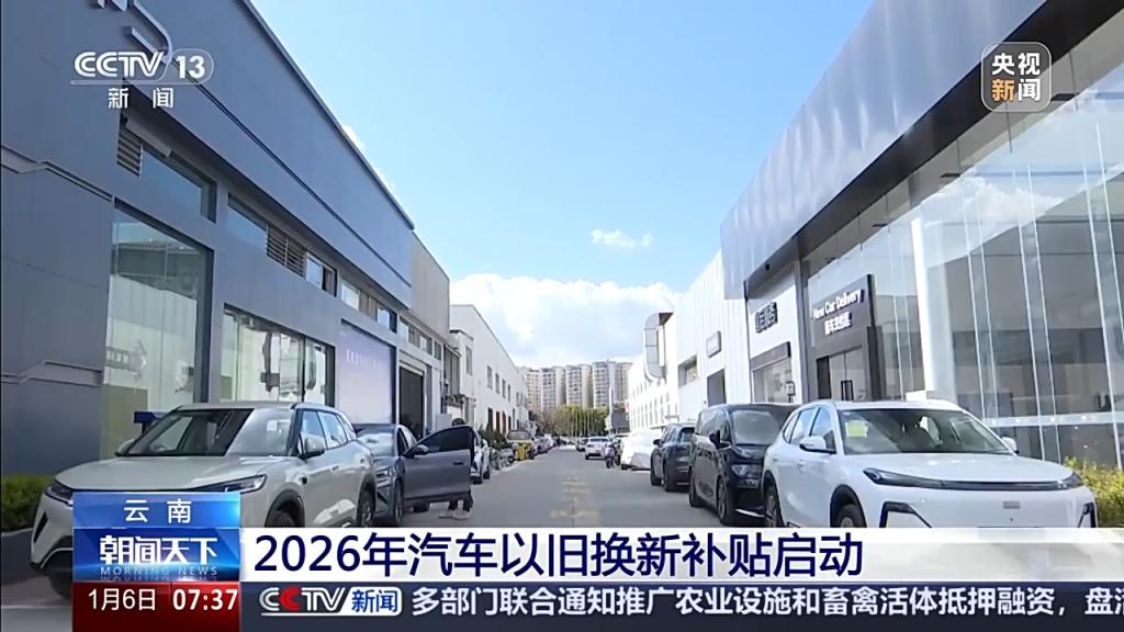 商务部等部门日前印发《2026年汽车以旧换新补贴实施细则》。云南省商务厅也发布公告,自2026年1 月1日起,启动2026年云南省汽车以旧换新补贴活动。 《2026年汽车以旧换新补贴实施细则》,明确了参与申领2026年汽车报废更新补贴旧车的注册登记时 间,相比2025年进一步扩大支持范围。同时《细则》明确,将继续实施汽车报废更新和汽车置换更新, 全国统一按照新车销售价格的固定比例给予补贴。 云南某汽车销售有限公司销售总监 陈绍昆:从原来一个绝对固定的金额,改为按照新车发票金额的比 例来进行补贴。那也就意味着,你要买的车型越贵,那么它的补贴金额可能就越高。 这两天,浙江多地的新一轮消费品以旧换新政策也全面落地,"国补"范围持续扩容,覆盖汽车、数码产 品等多个领域。让市民在享受实惠的同时,推动消费品质升级。 而在江西,当地接续实施消费品以旧换新政策,推动补贴红利精准释放。 在金华汽车城,各个品牌的汽车展厅内看车、试驾、洽谈的市民络绎不绝。门店负责人告诉记者,2026 年的浙江"国补"新政策来了,近段时间进店客流和成交量较平日有所增长。 市民 施女士:我了解到有一个什么置换政策,现在把置换政策叠加上去的话,其实优惠 ...