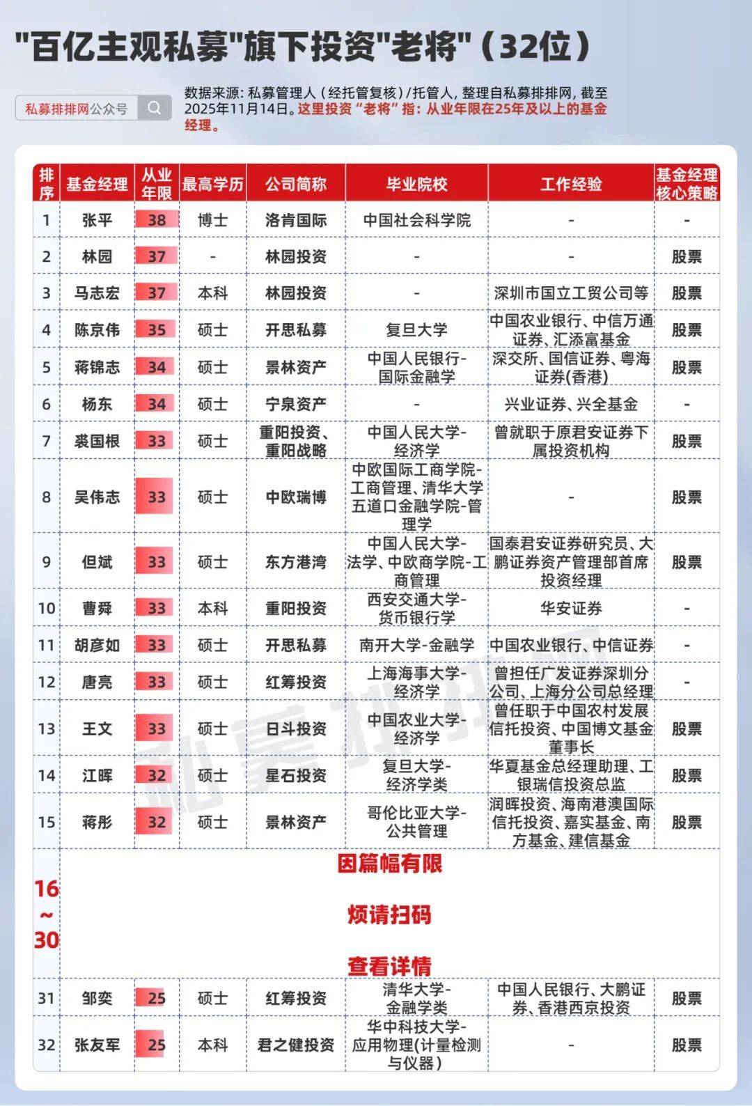 32位百亿主观私募投资“老将”揭晓!但斌、王文、吴伟志上榜!