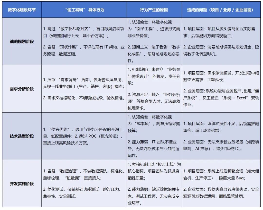 别再怪技术不行了,企业数字化做不好,问题出在 “过程偷工减料” 上