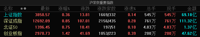 A股指数集体高开:创业板指涨1.42%,算力硬件领涨