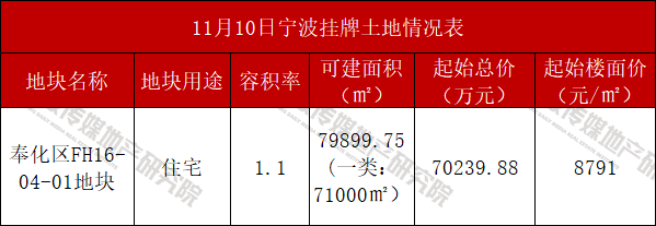 宁波奉化年度宅地首拍,楼面价8791元/㎡起
